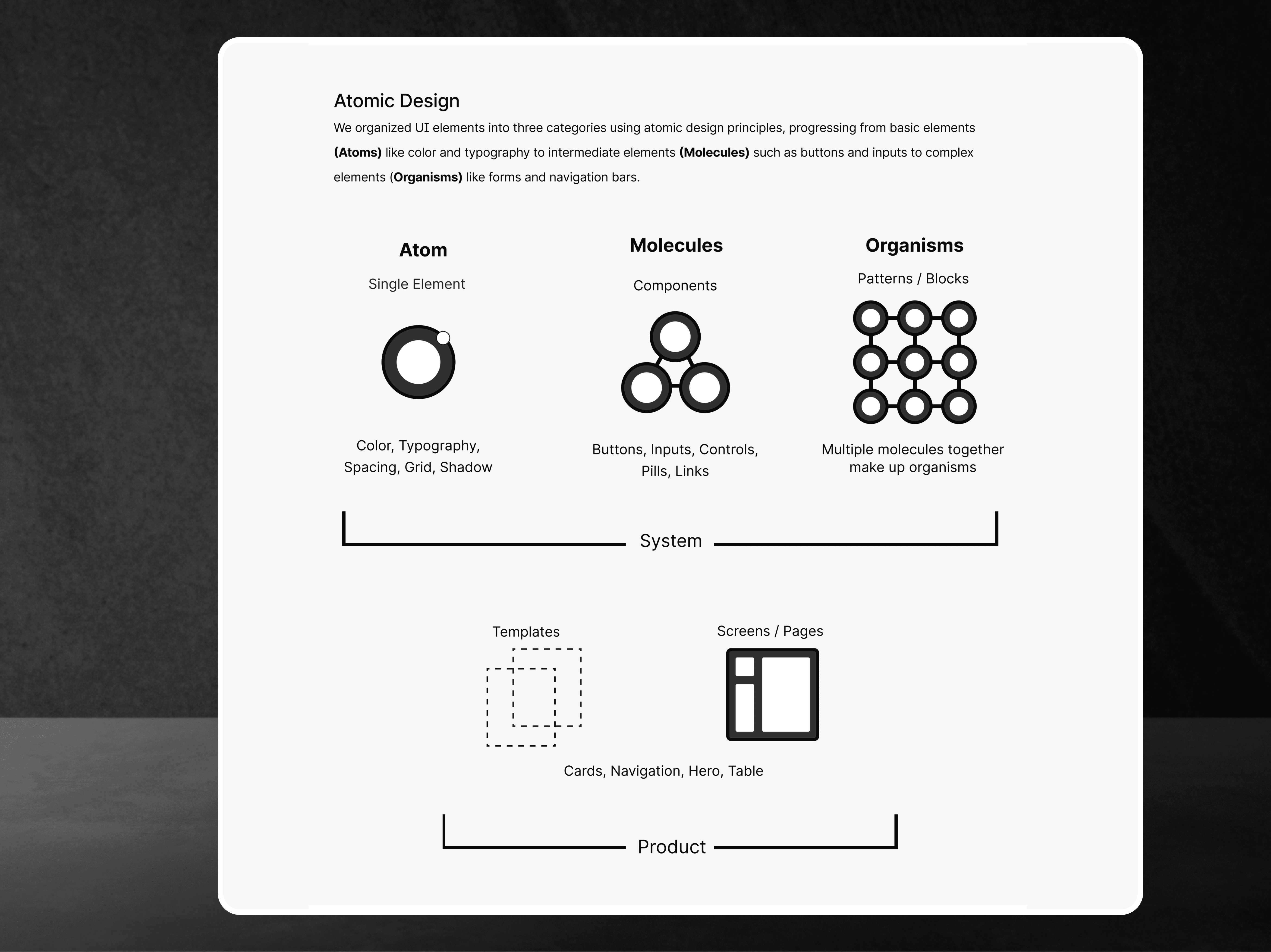 Our journey began with a collective effort, gathering team feedback and studying other leading design systems. We meticulously reviewed the existing shared library, identifying areas that needed enhancement. Our focus was on strategies to improve the Figma-based shared library's usability and explore new ways to complete and maintain it internally. This was a team effort, and we devised a multi-faceted approach together: Foundations as a source of truth: Foundations serve as the definitive reference in design systems, offering a comprehensive framework encompassing principles and guidelines applicable across all platforms. By implementing semantic naming conventions and embedding design tokens within Figma, we have streamlined the design process, enhancing the discoverability of foundational elements. Design Hierarchy: Our design hierarchy is not just a roadmap. It's a powerful tool that guides us through the complexity of our design system, making it easier for us to navigate and understand. We adhere to atomic design principles to ensure clear and efficient navigation. We introduce semantic naming and design token structures to help speed up design decisions. We reorganized the Figma shared library into smaller, more manageable segments, empowering us with a more efficient and user-friendly system. Integrating Accessibility: We are holding monthly collaborative meetings on accessibility, incorporating testing tools like Axe and Stark for UX designers, and transitioning to a 4px base grid for consistent, user-friendly layouts. We are also implementing t-shirt sizing (sm, md, lg, etc.) for responsive device design and using sentence-case UI text to improve user readability. Cultivating Collaboration: We implemented dedicated communication channels such as Slack and email, conducted regular update meetings to enhance engagement, and utilized a Kanban board to improve teamwork within the design team.